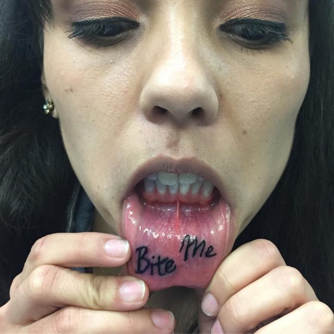 La lèvre intérieure inférieure est l’emplacement le plus préféré pour ces tatouages car elle a plus d’espace et il est plus facile de positionner votre tête pour que l’artiste conçoive le tatouage par rapport à la lèvre supérieure.